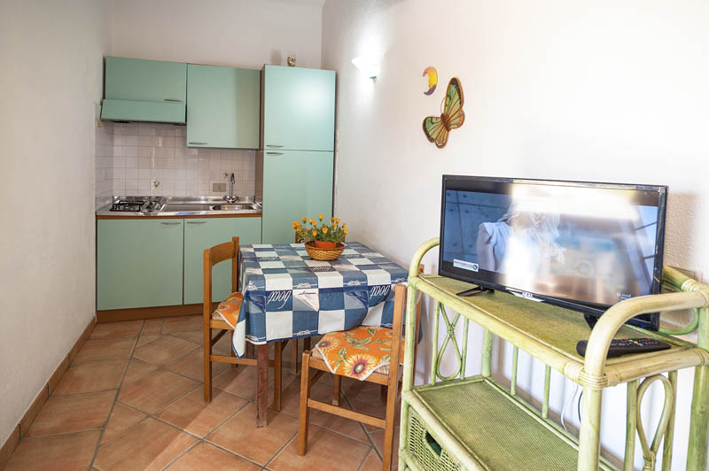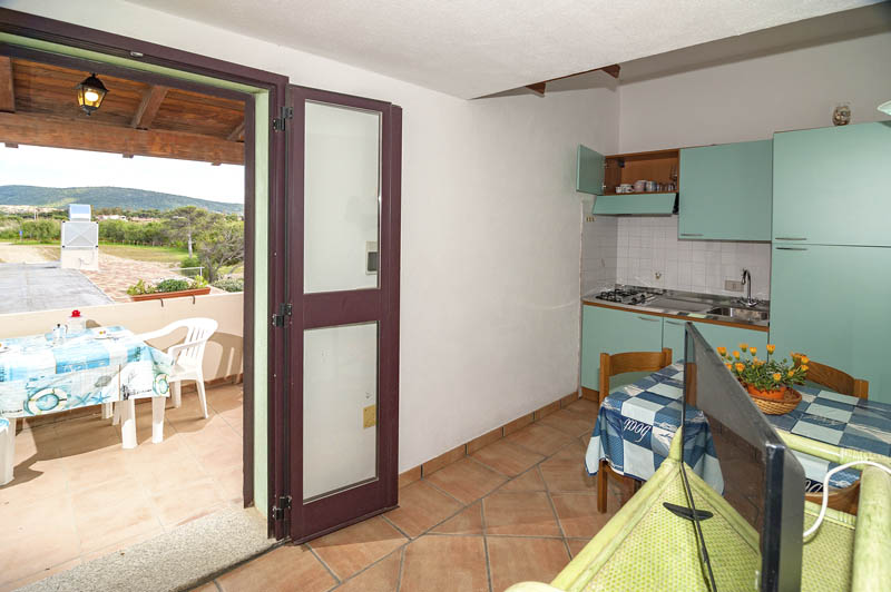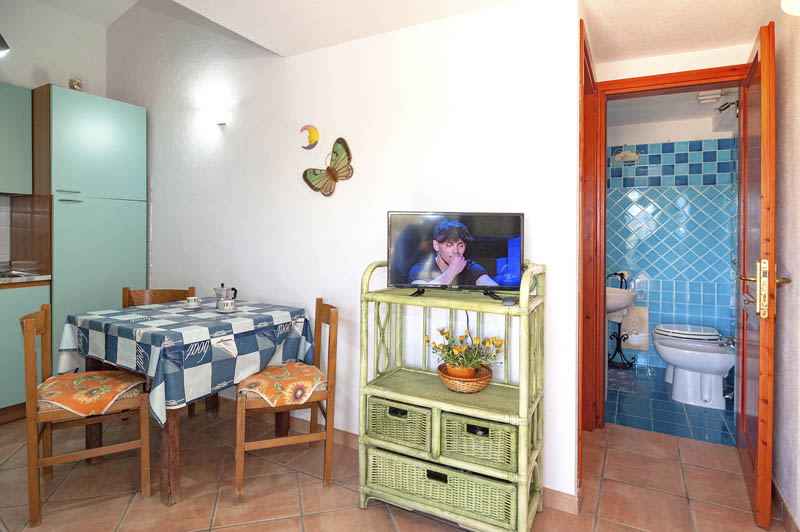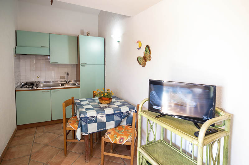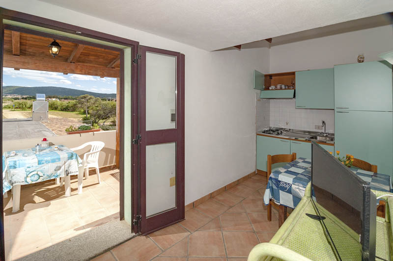 Situato al piano primo, l’appartamento è composto da una camera da letto matrimoniale con armadio, un soppalco con un letto singolo, un bagno con doccia, un soggiorno con cucina e tavolo da pranzo. Dispone di un tavolo e sedie da esterno da utilizzare in una veranda laterale indipendente vista mare.